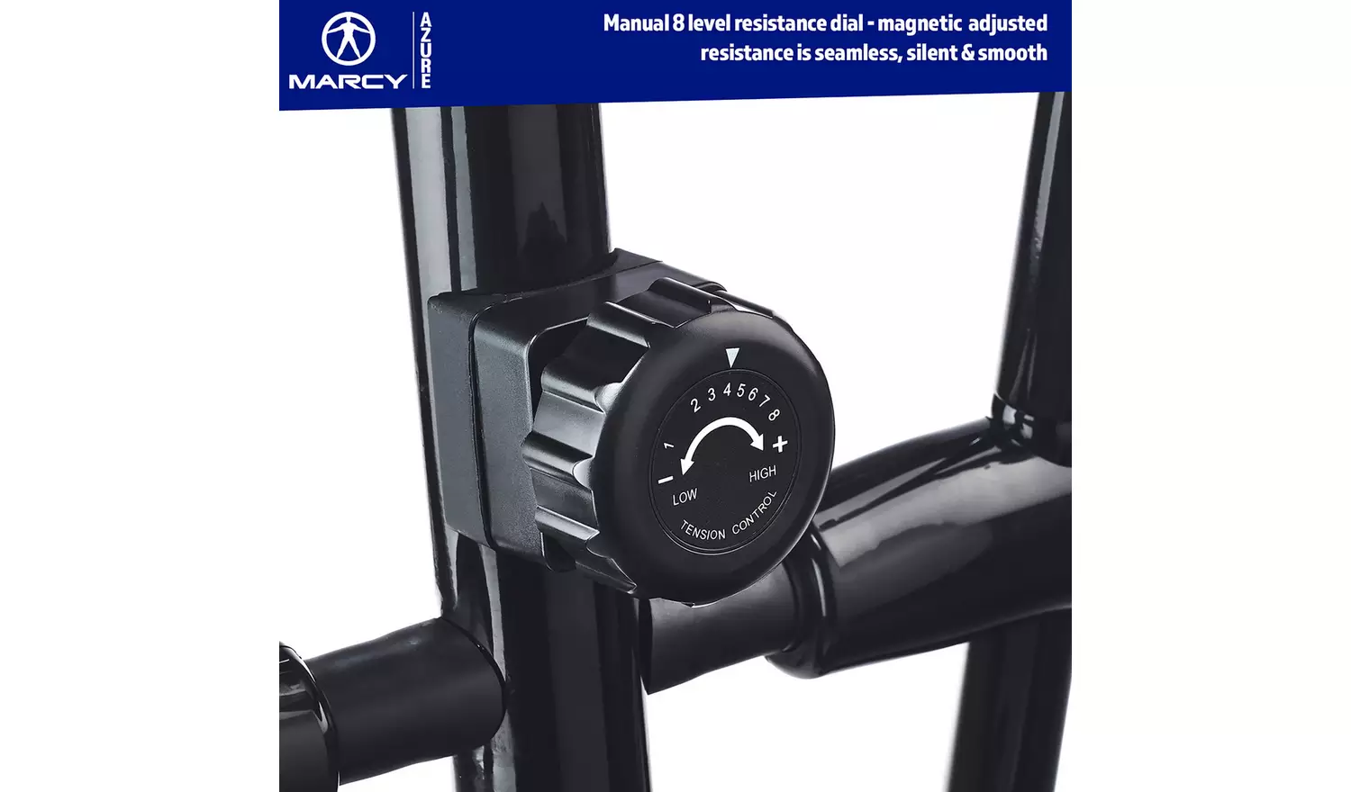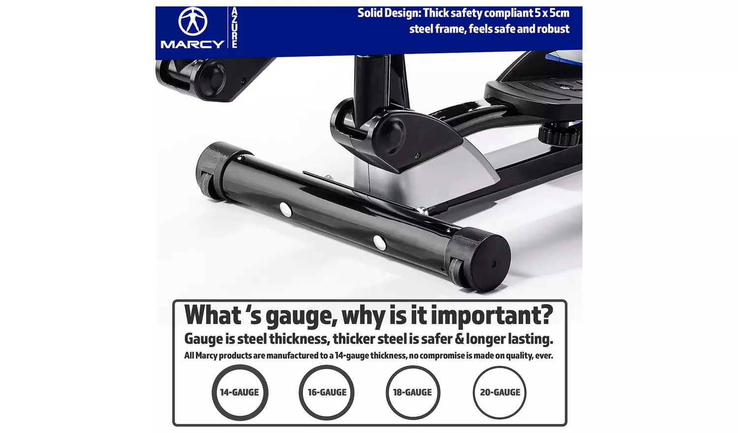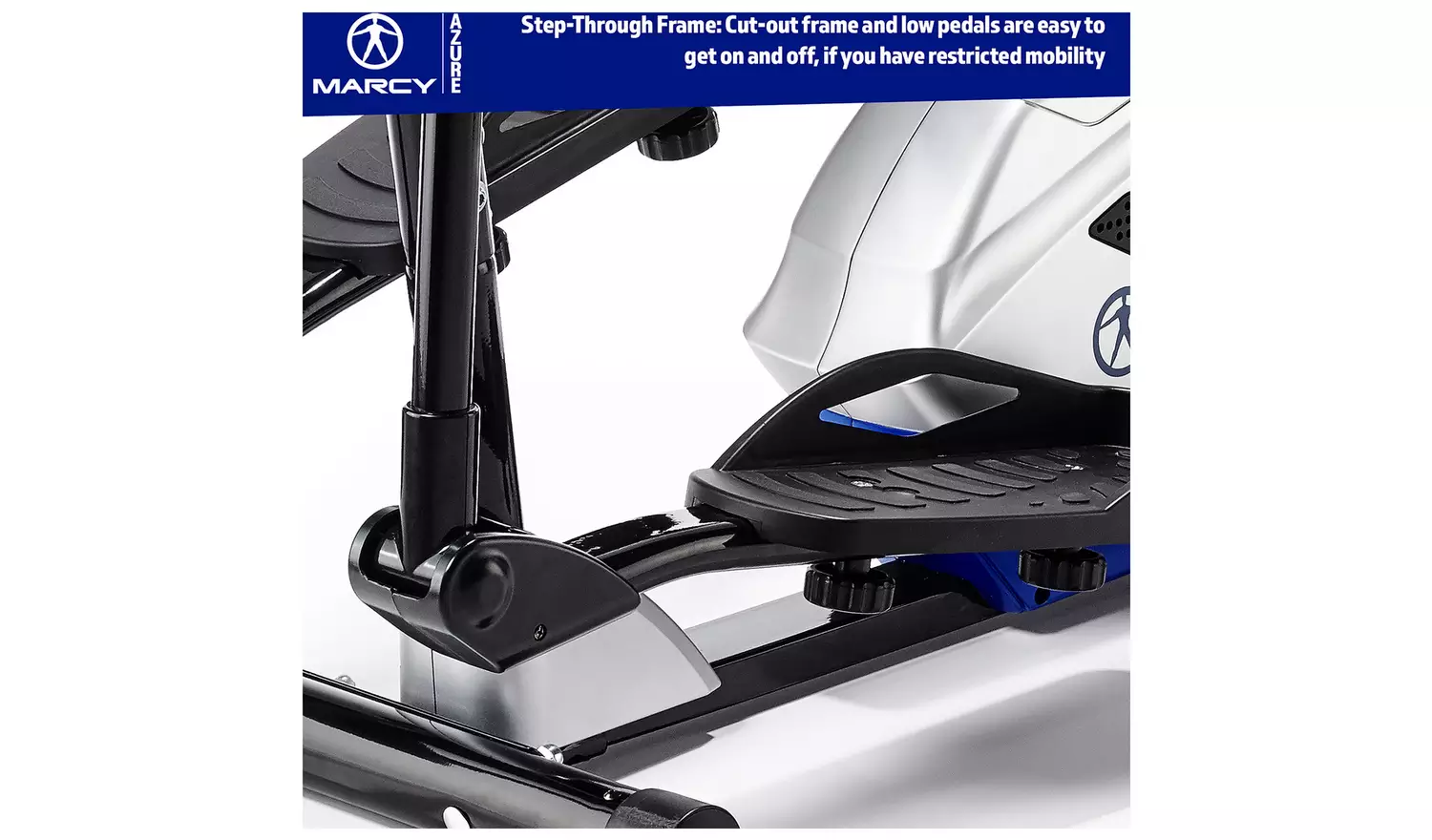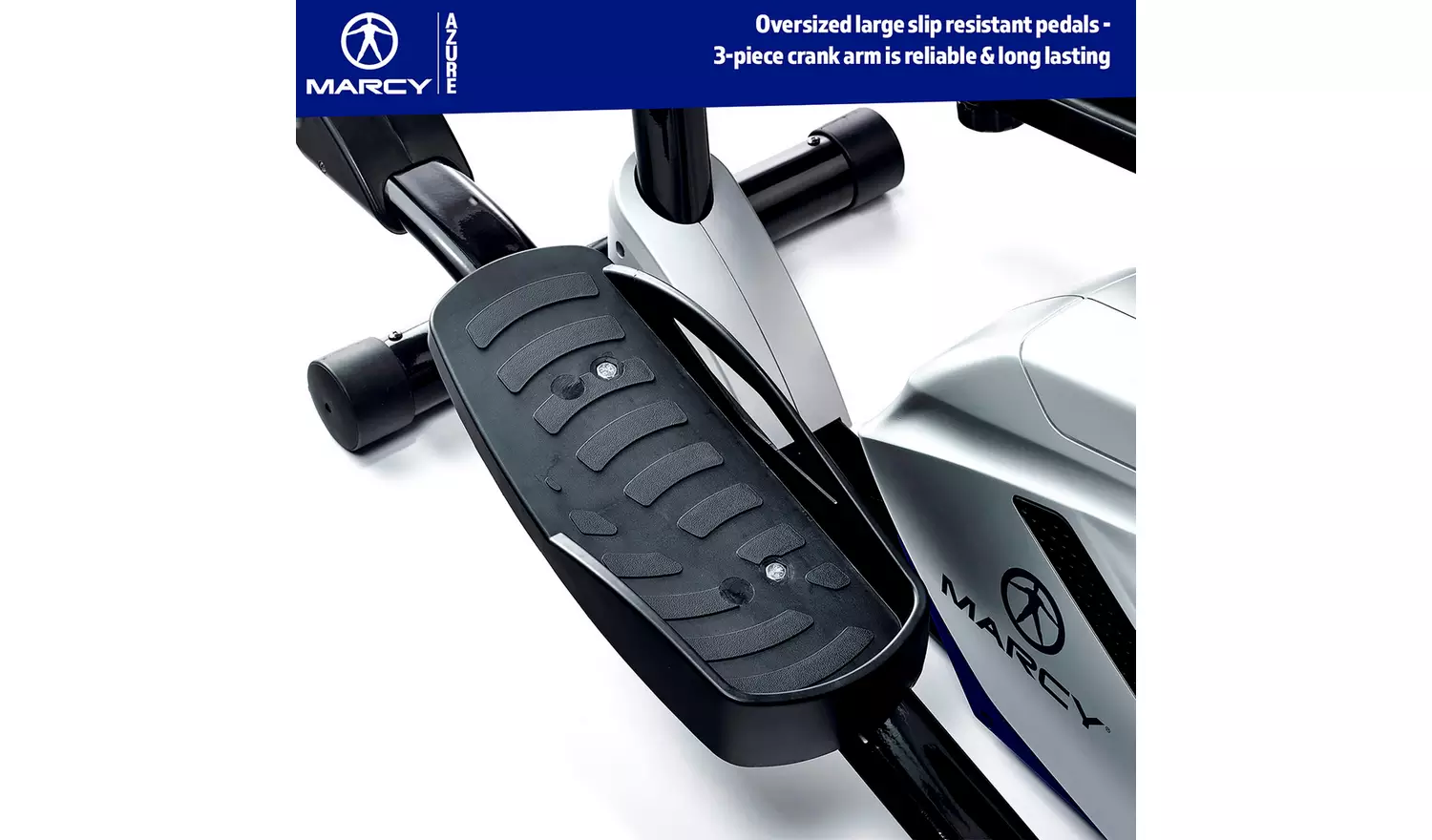 The Marcy Azure Cross Trainer is a high-quality cross trainer packed with tonnes of features to help you work out and reach your fitness goal. Equipped with a belt-driven 4 kg flywheel and 8 magnetic resistance levels for a smooth, fluid and silent workout. The Azure Cross Trainer also has a 3-piece crank and a 14″ Stride length for working out comfortably. Stay motivated with the built-in device holder and easy to use battery powered LCD display where you can track your performance through the 5 feedback setting including a pulse rate monitor.