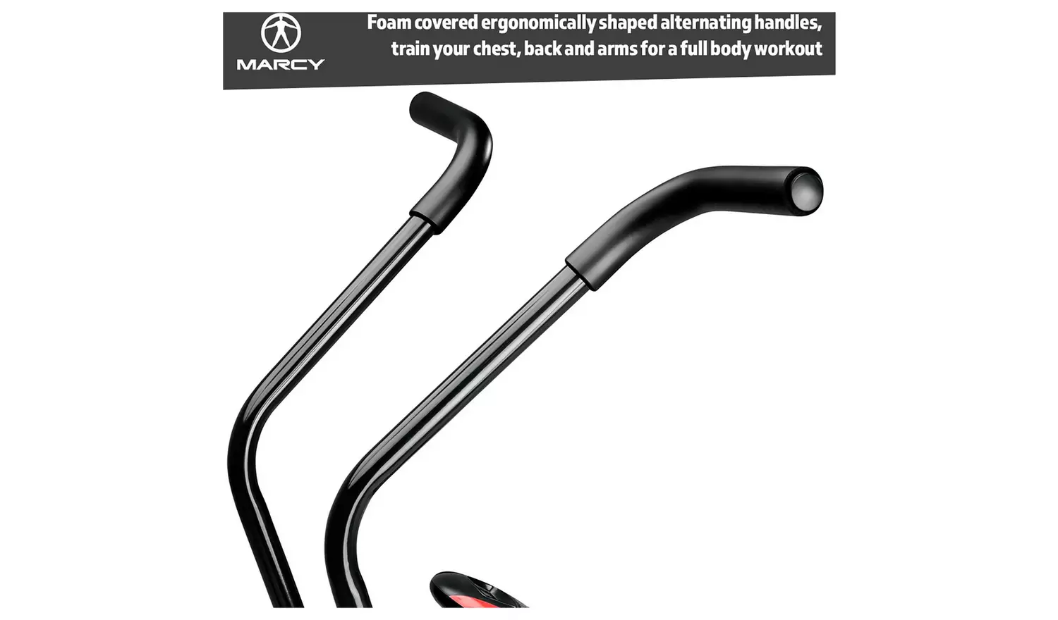 The Marcy NS-1000 Exercise Bike is a unique air resistance exercise bike designed to target a wide range of muscle groups, perfect for toning and weight loss goals. Combining the alternative arms with pedaling, experience a full-body workout targeting your legs, arms, chest and back through one fluid motion for a great intense workout. Regulate and adjust the intensity of your workout through the exercise bike’s resistance knob and track your progress with ease with the user friendly battery powered LCD display console.