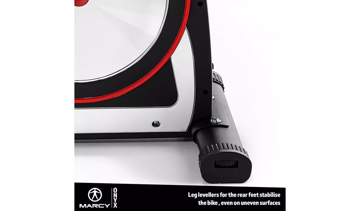 Keep focused and stay motivated with the award-winning Marcy Onyx B80 exercise bike. The ultra-sleek 2 tone modern exercise bike offers a 5 kg flywheel with 16 magnetic resistance levels, and 23 engaging programs displayed on a backlight blue LED console to help you reach your fitness goal confidently. The Marcy Onyx B80 exercise bike can adapt to your body composition through its adjustable high-density seat, slip resistance pedals and built-in heart rate pulse grips featured in the handlebars.