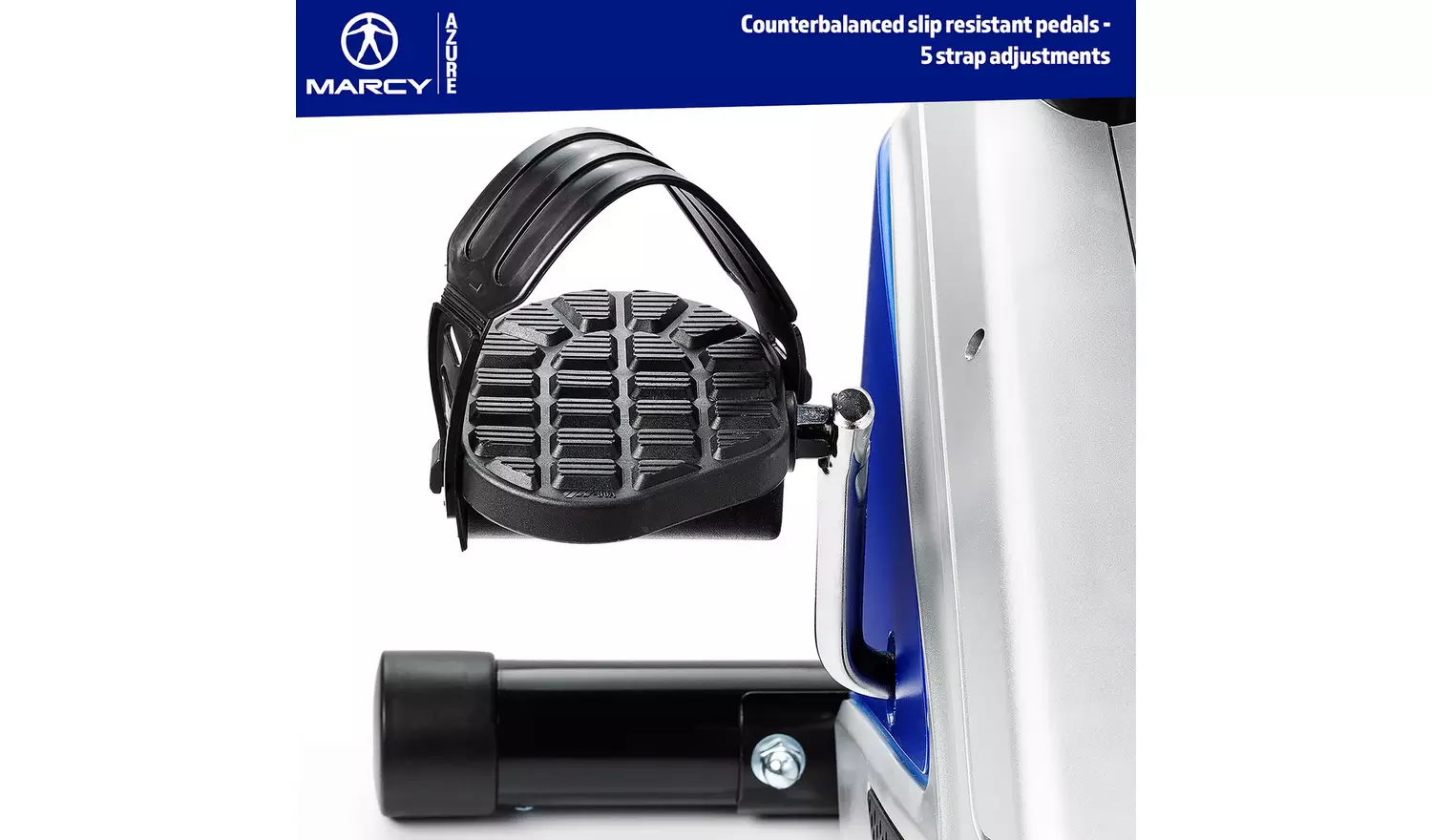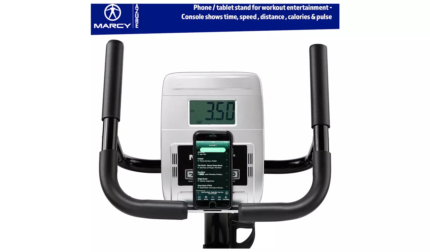 About this product Designed to be compact, the Marcy Azure Upright exercise bike is perfect for working out if you