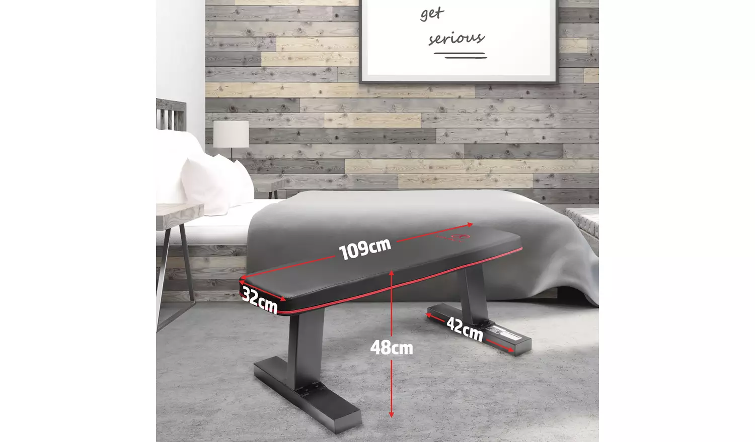 Test your limits with the Marcy SB-10510 Deluxe Flat Workout Weight Bench designed to handle a staggering weight capacity of 270kg. The SB-10510 flat weight bench framework is engineered from 14-gauge steel, providing this weight bench with fantastic structural support. Its extra-long and wide 2.5″ thick back pad provides your back, shoulders and neck with support and comfort. With the Marcy SB-10510 flat workout weight bench, you can target your chest, back, shoulders, legs, biceps, triceps and abs with the addition of some dumbbells.