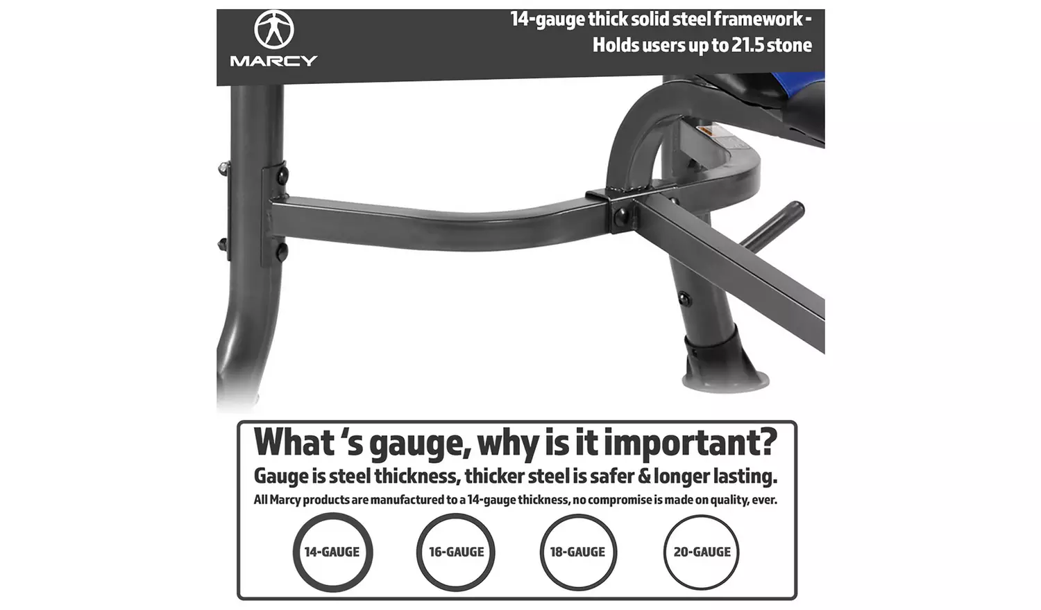 Start as you mean to go on with the Marcy MWB-36780b, this convenient bench and weight set has all the fundamentals to kick start your weight training journey. Don’t be fooled into thinking a starter bench is a flimsy one, this compact chunk boasts 14-gauge thick, 7.5 cm rounded steel framework for a solid feel and great load capacities.