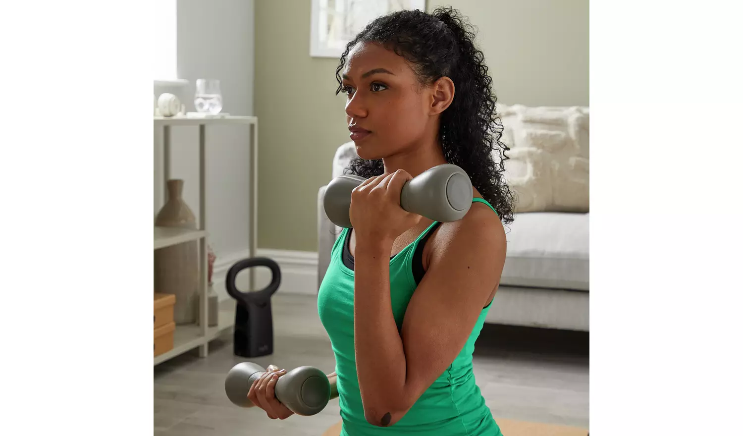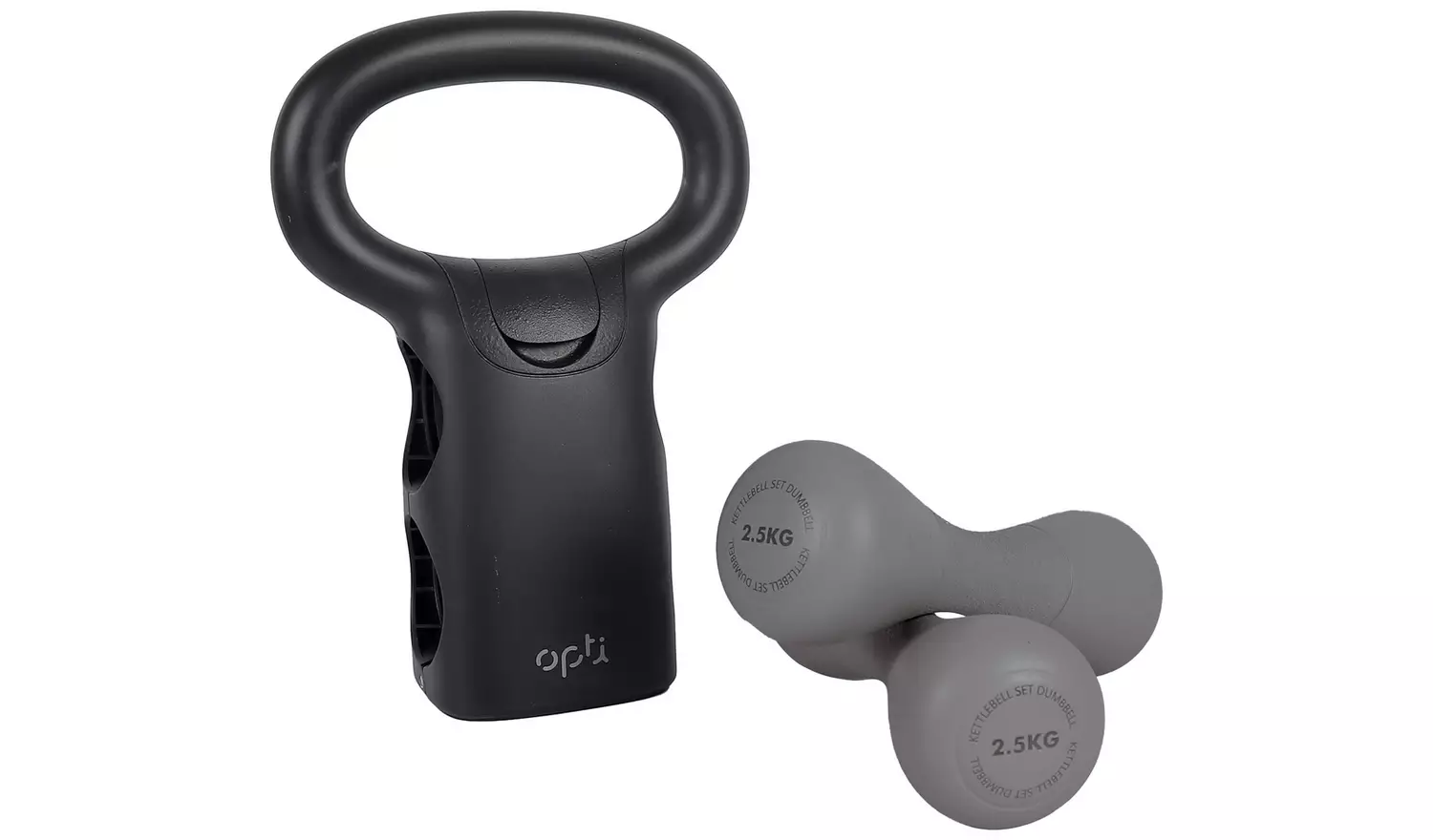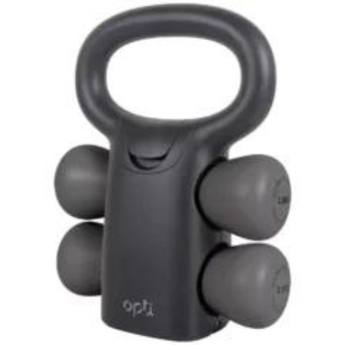A kettlebell and set of dumbbells in one neat design, that’s a clever idea. This brand new 2 in 1 Opti kit gives you work out options. Use them both separately. Or add as few or as many dumbbells to the kettlebell to build up strength and stamina and tone muscles. Each dumbbell slots in easily and securely for safe lifting. This compact set takes up minimum space at home and is simple to transport when you want to take them with you.
