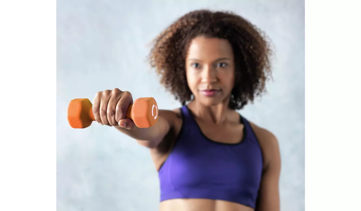 Perfect for beginners to the world of fitness. These weights are great for conditioning your whole body so you can sculpt your arms, shoulders, back and legs as you can perform a range of exercises with them. These dumbbells are small and easily stackable thanks to their hex shape, making them the perfect start to a home gym equipment collection. The inside is made of cast iron with a strong neoprene coat meaning you get a weight with a snug grip making your full body workout more comfortable. Perform a combination of bicep and hammer curls with triceps extensions to work on your upper arms and lateral, side and rear raises with shoulder presses to build stronger shoulders. You can also perform a range of leg exercises by adding weight to lunges or squats to increase your strength and enhance your balance. The anti-roll design gives you peace of mind that the dumbbell can’t roll away when your workout is over, plus it can be stored away safely.