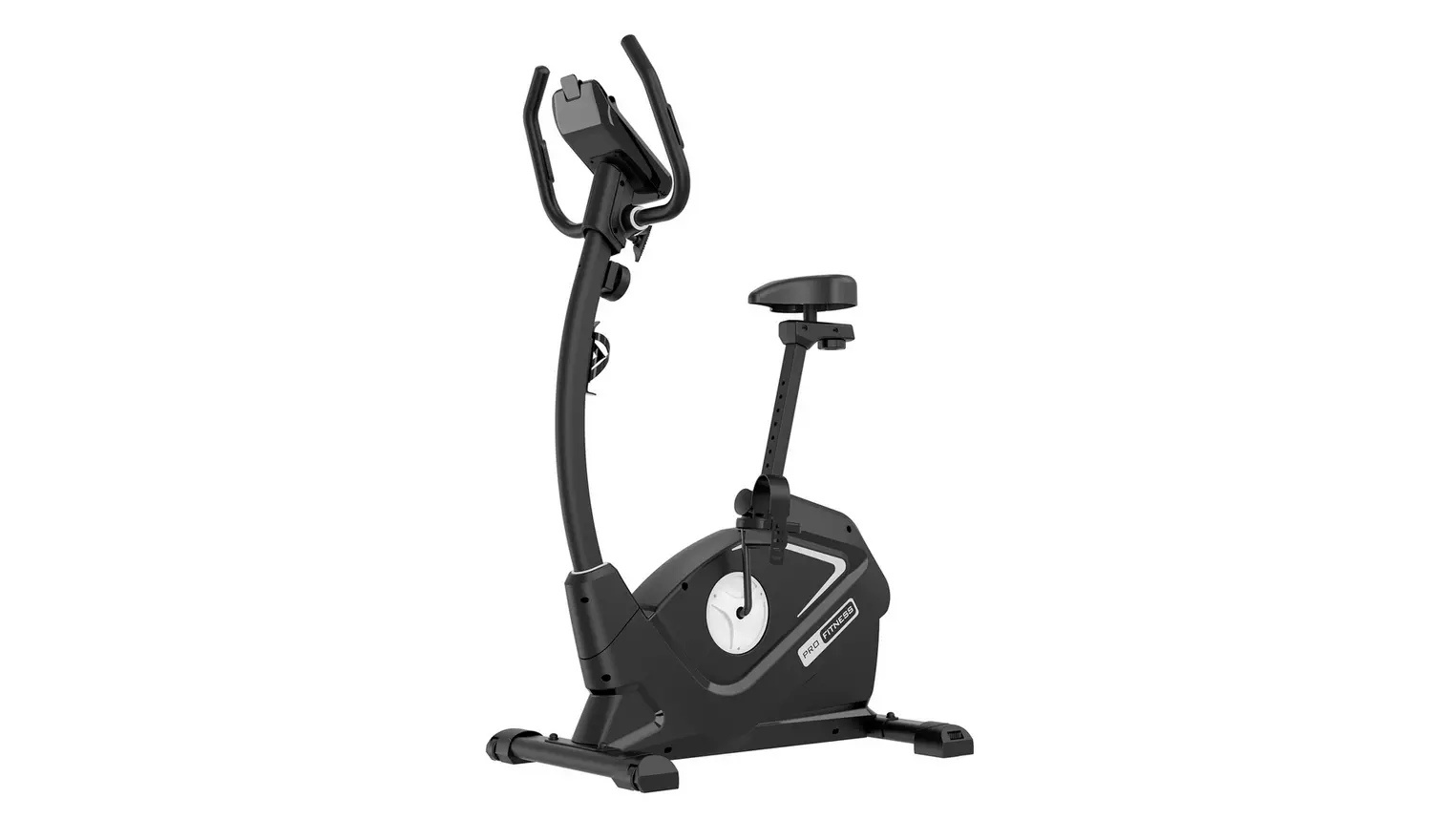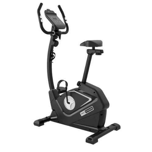 Good looking and easy to use. This Pro Fitness exercise bike will help you reach your fitness goals and with eight levels of manual tension you can choose how quickly you progress. It has an adjustable armrest angle and an inertia wheel that will give you a smooth and quiet ride, without leaving your home. A five inch LCD monitor will help you keep track of your speed, distance, calories, time, and pulse keeping you motivated on your fitness journey.