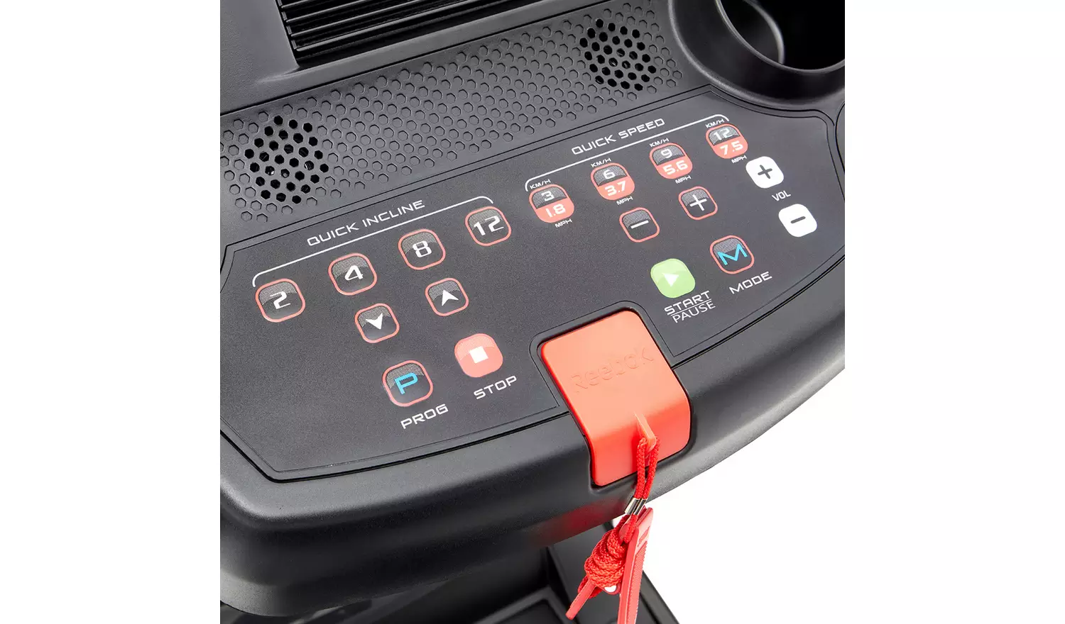 • Console feedback including: Speed, Distance, Time, Calories, Program.