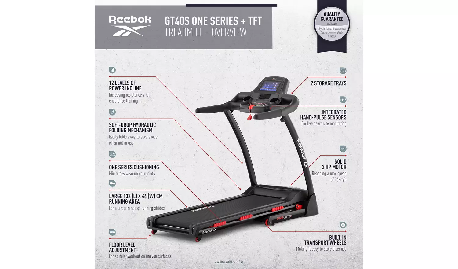 • Maximum user weight 110kg (17st 5lb).