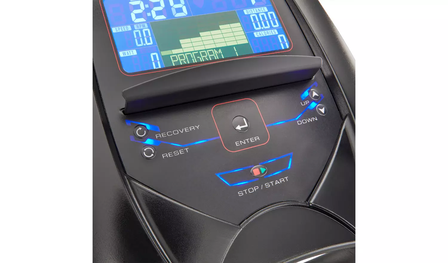 - Console feedback including: Speed, Time, Distance, Calories, Pulse, Watts, RPM.