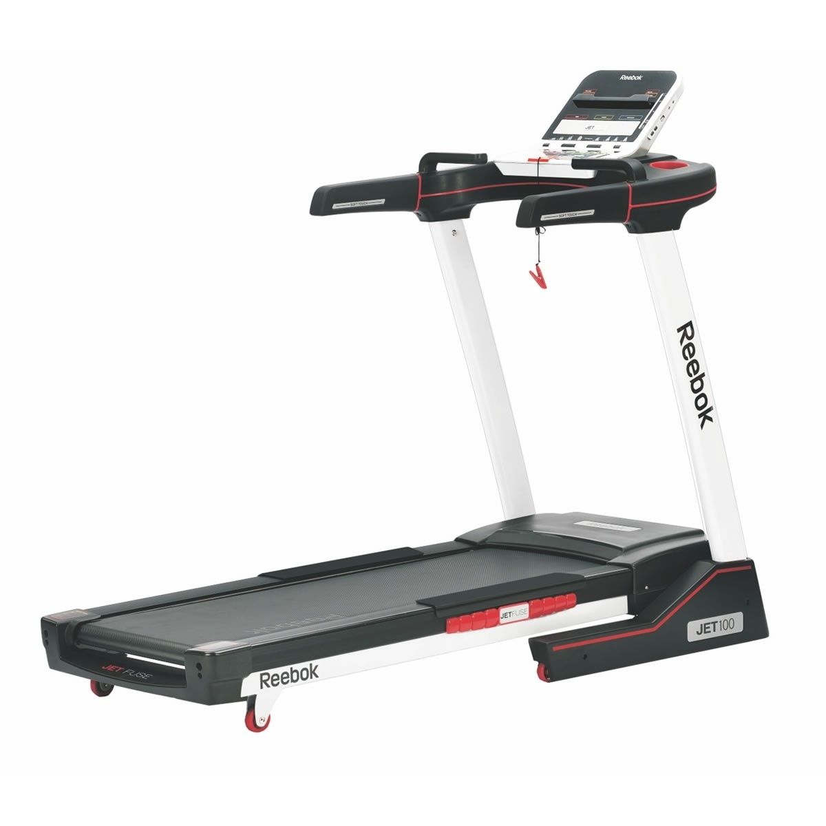 The entire Reebok Jet series of treadmills have an auto stop feature. While training, simply attach the security key to your clothing and run as usual. Should you trip or find yourself dangerously far to the rear of the treadmill, the magnetic key is removed from the console and immediately brings the machine to a stop. This feature significantly reduces potential injuries.
